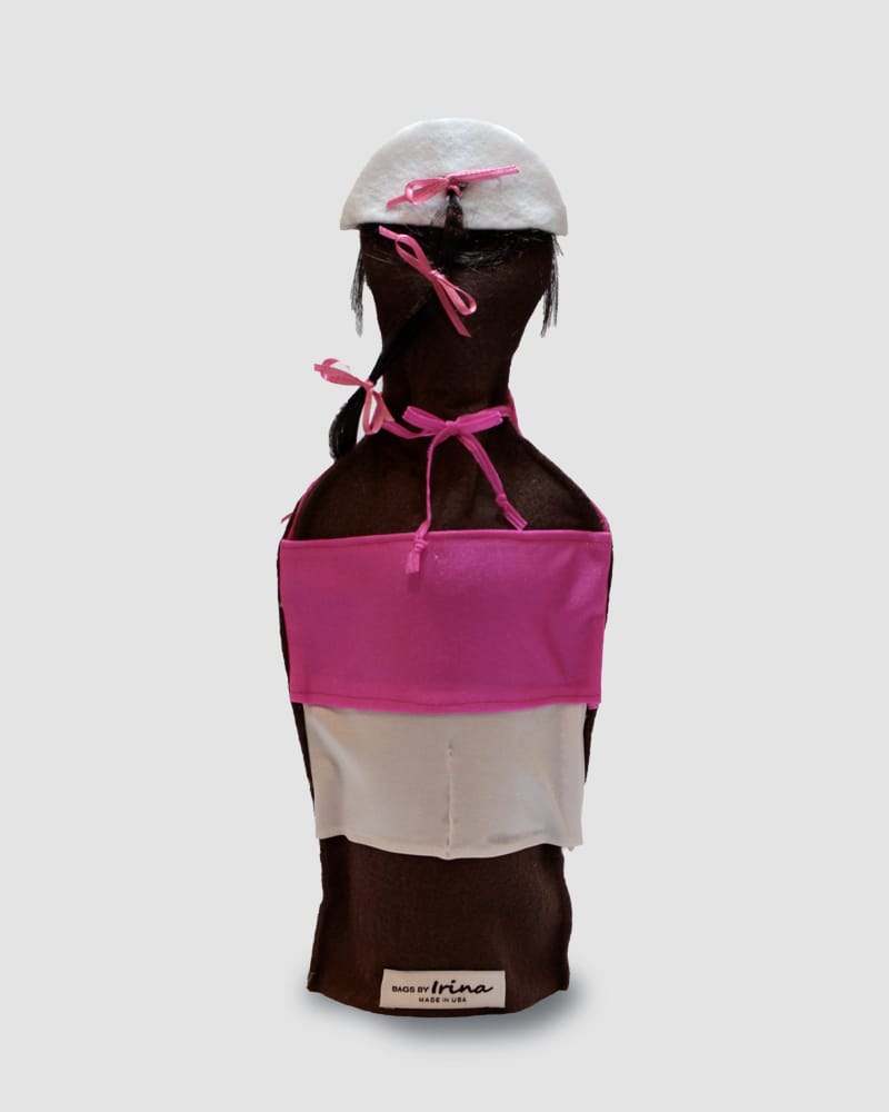 Toni is an avid Pickleball player and ready to play a fast game. Her outfit is her hot pink sports top a white shorts. She has her custom paddle, hot pink ball and wrist bands. She keeps her hair braided into a ponytail with pink bows and pulled through her white cap.